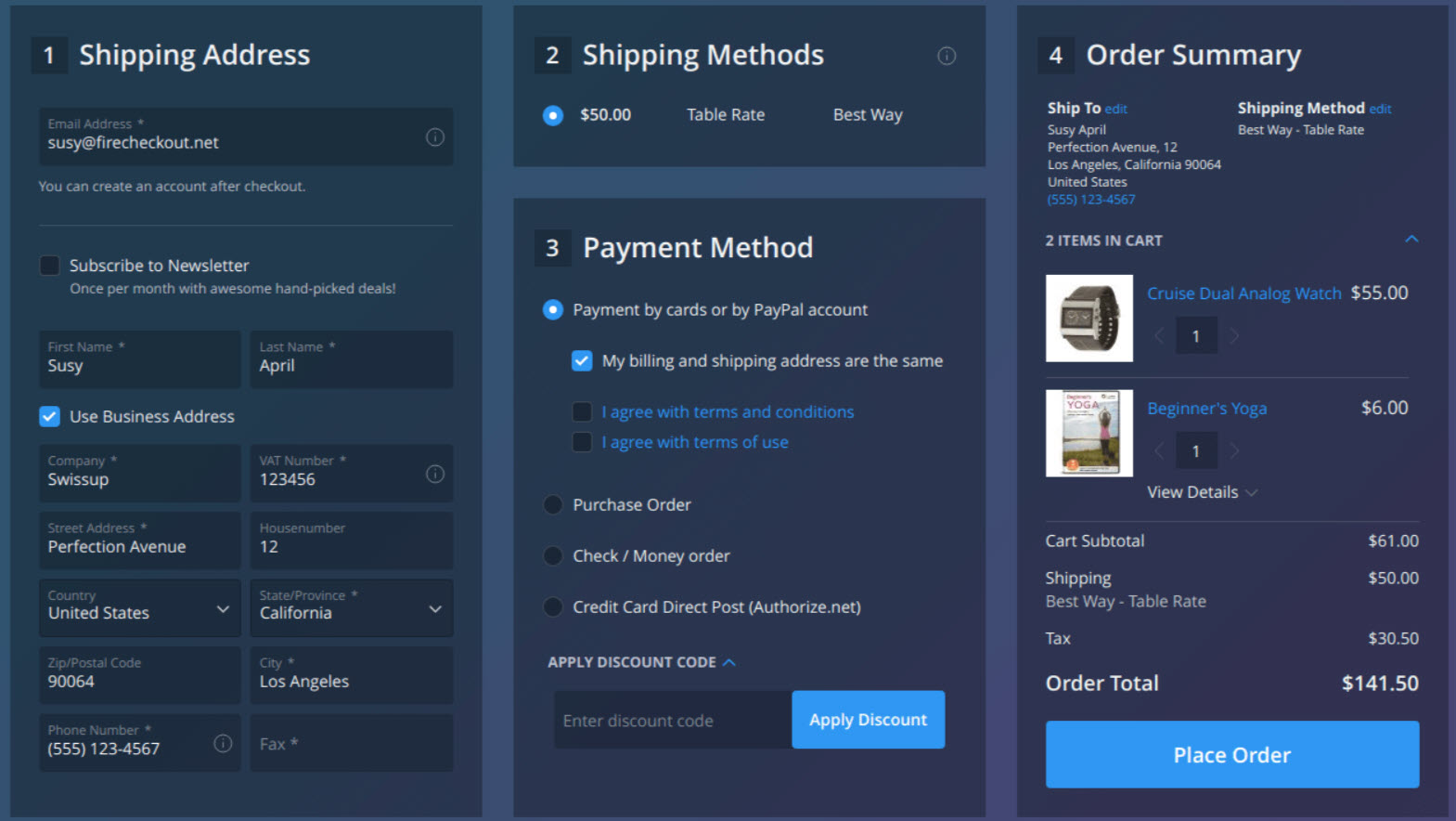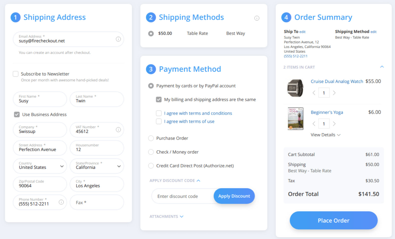 Amasty one-step checkout Magento 2 extension allows store owner to change the default checkout page to one-step checkout page in just 5 minutes. This is one of the most light-weighted one page checkout extension for Magento 2