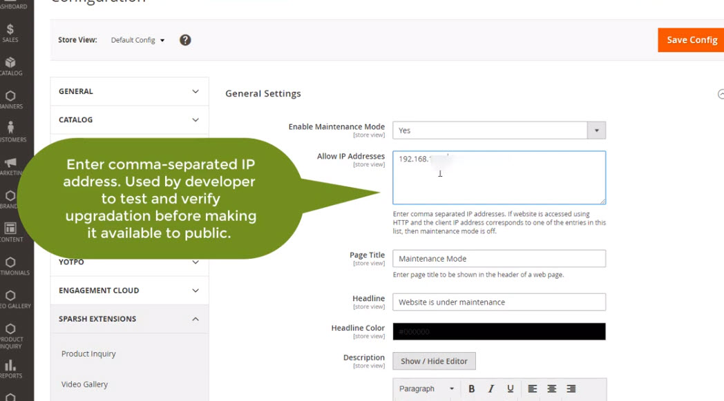 Step 3: You can make an exception rule which allows some IP addresses to access website even while maintenance mode is enabled.